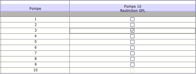 Exemple ici pour les Pompes 3 (Fuel) et 10 (GPL) qui sont dans la même zone :
